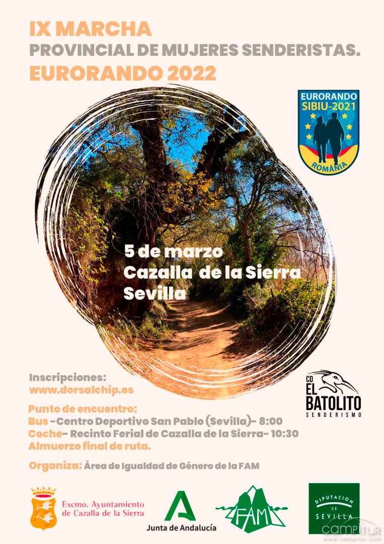 El próximo sábado, 5 de marzo, Cazalla de la Sierra acoge la celebración de la IX Marcha Provincial de Mujeres Senderistas. Eurorando 2022